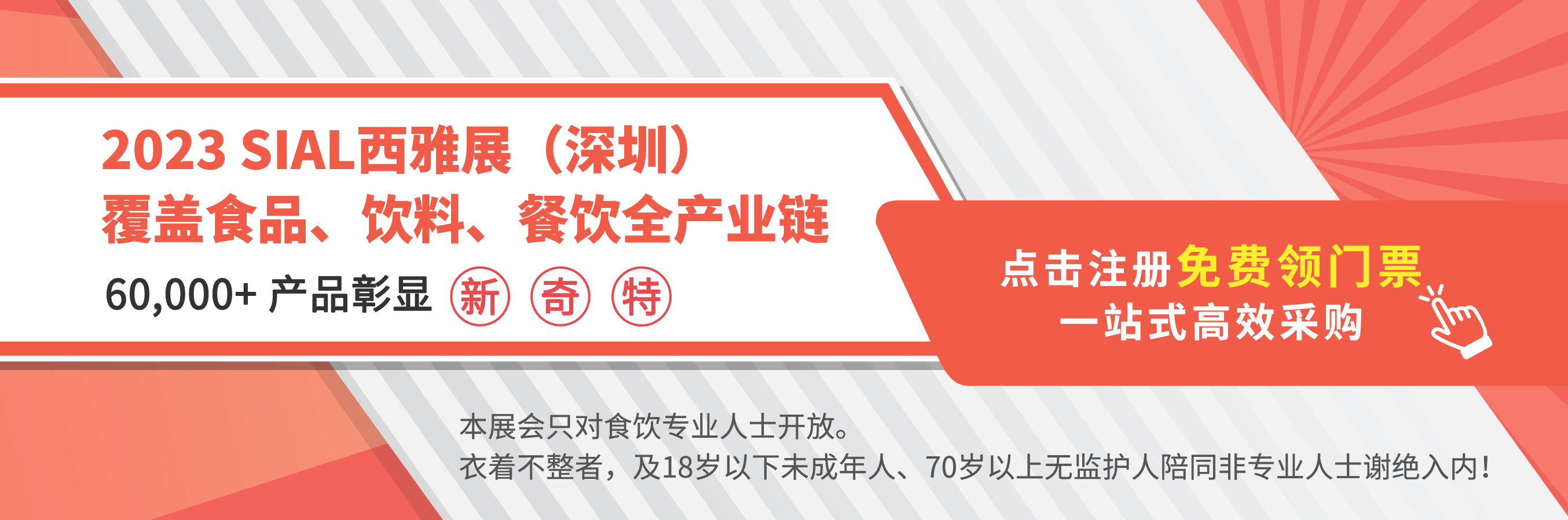 萬(wàn)眾矚目的SIAL西雅國(guó)際食品展(深圳)將于2023年8月28-30日在深圳會(huì)展中心(福田)拉開帷幕!匯聚行業(yè)翹楚,引領(lǐng)前沿信息的第五屆SIAL世界食品產(chǎn)業(yè)峰會(huì)也將于展會(huì)同期權(quán)威舉辦。為助力食飲企業(yè)獲得更多高價(jià)值的合作商機(jī)和行業(yè)信息,即日起,峰會(huì)所涵蓋的5大主題論壇門票可免費(fèi)領(lǐng)取!