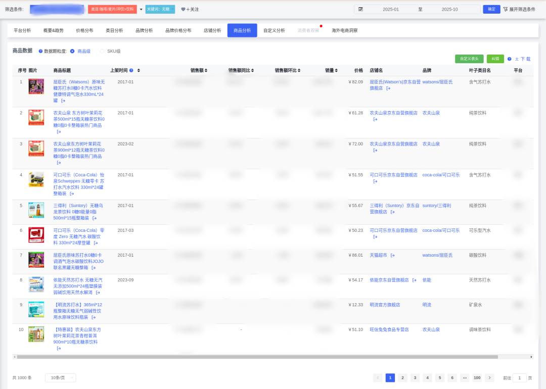 無糖飲料市場呈現顯著增長趨勢,2025年1-10月總銷售額達31.33億元,同比增長9.86%,總銷量7433萬件,同比增長4.34%。市場供給充足,商品數達61,900個,店鋪數11,067家,競爭激烈。然而,市場從"野蠻生長"進入"精耕細作"階段,無糖茶品類銷售額同比出現下降,標志著行業結構性調整的開始。